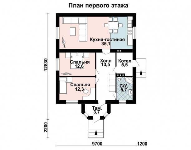 - простая форма, двускатная крыша, относительно небольшая площадь дома способствуют значительной экономии средств во время его строительства и эксплуатации;