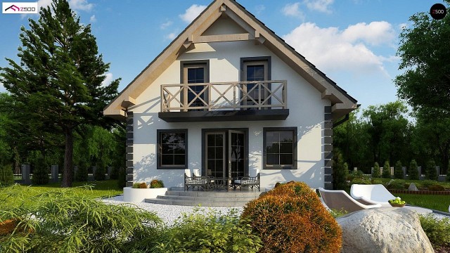 D2 Представляет собой очаровательный и практичный дом с мансардой в традиционном стиле. Он подкупает своим домашним, «теплым» дизайном, а уютное мансардное окно, характерное оформление балкона и окон еще больше усиливают это настроение. Впрочем, и остальные характеристики дома имеют целый ряд достоинств.