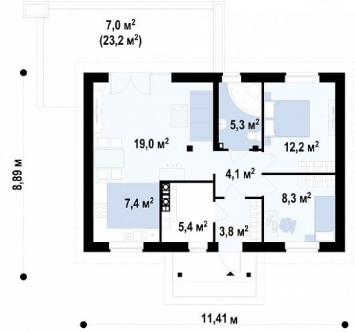 большое хозяйственное помещение позволяет оборудовать в нем котельную для любого вида топлива, а также сделать доступ на кухню и обустроить практичную кладовую;
