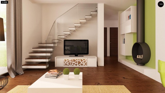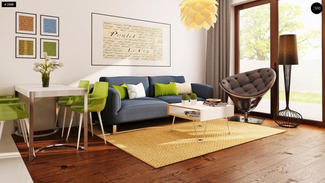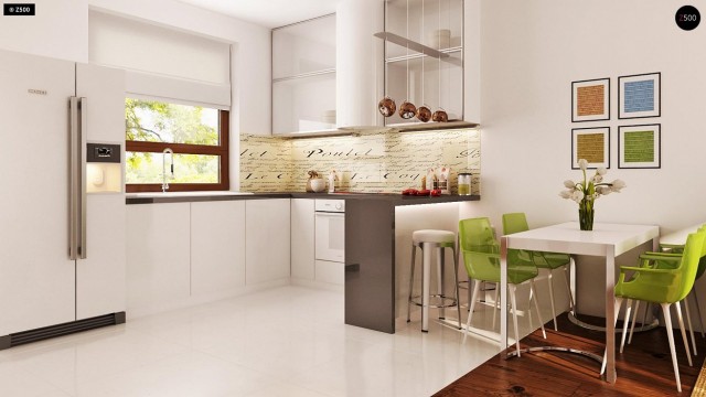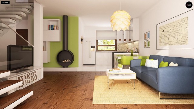 открытая кухня зрительно увеличивает пространство дневной зоны, но при желании ее можно отделить от гостиной стенной или перегородкой;