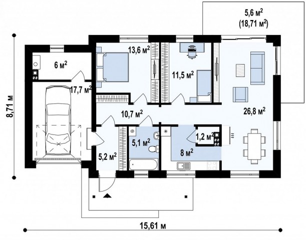 Разработка идеальна для тех, кто ищет небольшой, но функциональный дом, спроектированный на одном уровне.