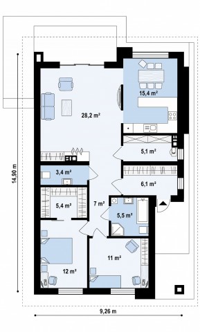 Z356 подойдет для тех, кто ищет проект удобного и функционального дома для узкого участка.