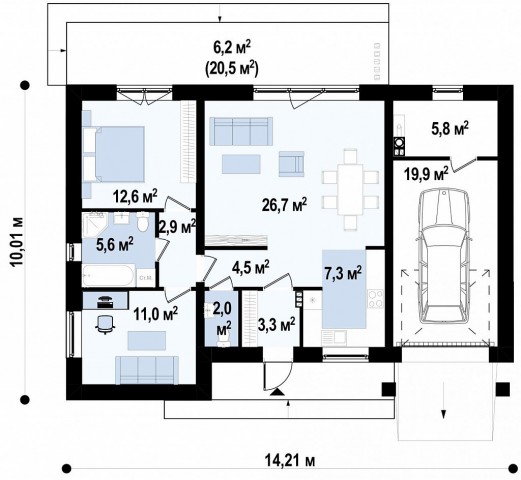 Проект Z427 предназначен для тех, кто ищет небольшой, но уютный и функциональный дом для своей семьи. Проект отличается эргономичностью и функциональностью интерьера. Несмотря на небольшую площадь дома, домочадцы могут наслаждаться домашностью, уютом и комфортом.