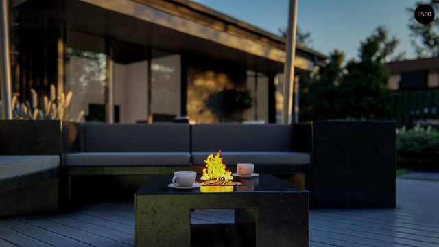 Дневная часть дома имеет открытый интерьер. Отсюда можно выйти на уютную террасу. За счет больших окон в помещении светло и уютно.