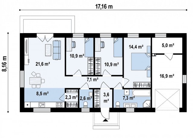 Проект Z488 предназначен для тех, кто ищет светлый и уютный дом для своей семьи. Простая форма строения и неброский дизайн экстерьера делают проект актуальным для любой местности.