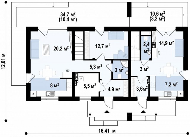 Дополнительная комната на первом этаже в одной из половин дома поможет сделать ежедневный домашний быт проще и комфортнее.