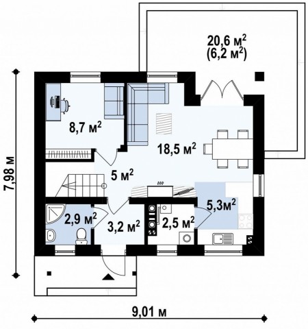 Небольшая крытая терраса может стать уютным продолжением зоны отдыха з летнее время.