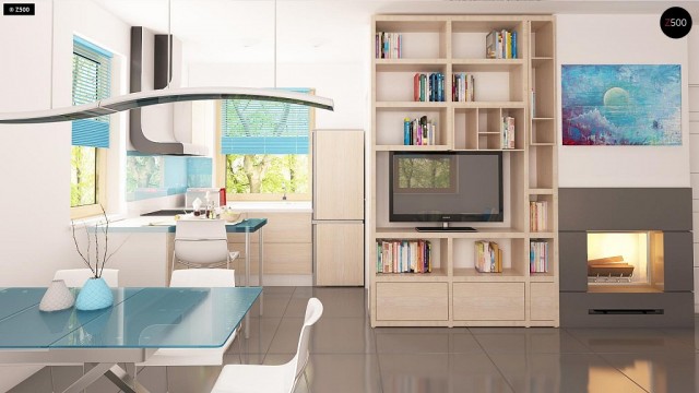 Открытая кухня зрительно увеличивает гостиную и делает ее более светлой.