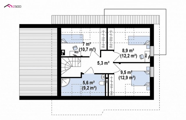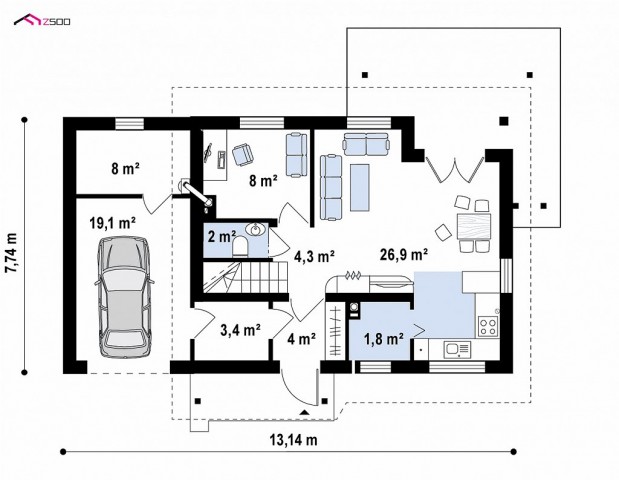 Дом, возведенный по проекту Z212 GL, понравится всем, кто ищет небольшой, функциональный коттедж, в котором, несмотря на свои небольшие размеры, есть все необходимое для повседневной жизни семьи из 4-5 человек.