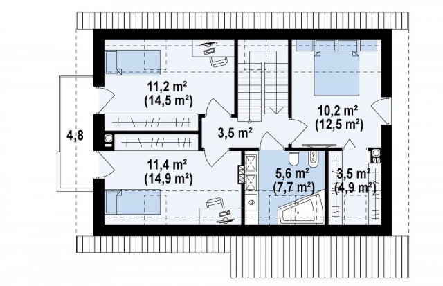 Одна из спален мансарды обустроена собственной гардеробной, две другие имеют выход на балкон.