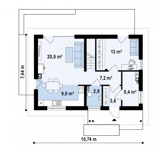 Компактная простая форма и двускатная крыша способствуют уменьшению затрат на строительные и эксплуатационные расходы.