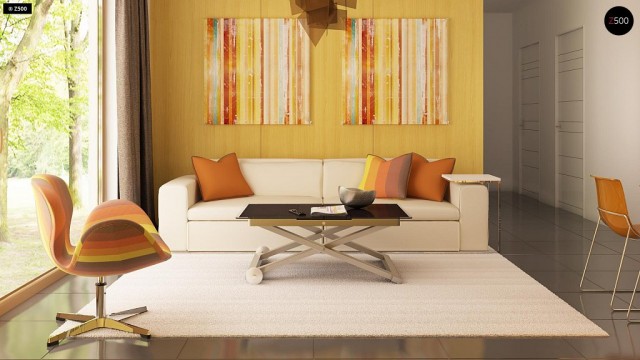 Простая форма гостиной создает ощущение свободы открытого пространства.