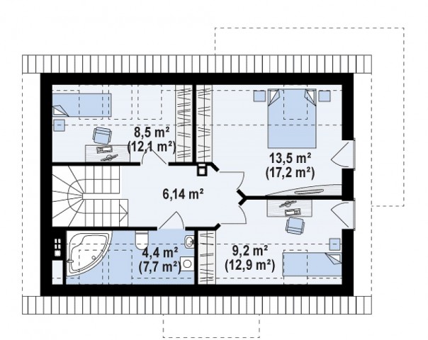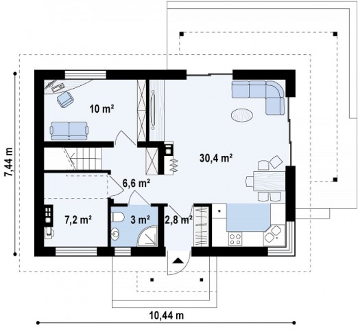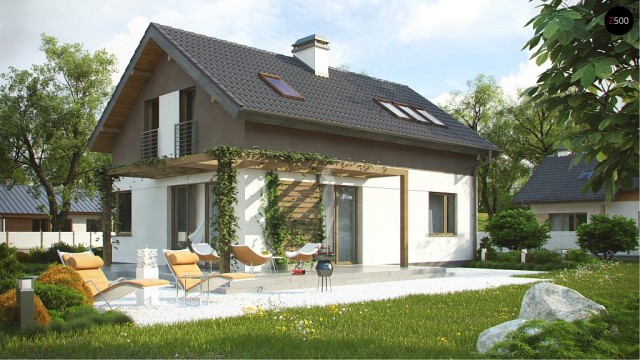 Двускатная крыша и простая конструкция дома, его относительно небольшая площадь позволяют сократить расходы на строительство и содержание дома.