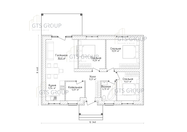 - расположение всех помещений на одном уровне создает дополнительный комфорт и исключает необходимость перемещаться с этажа на этаж;