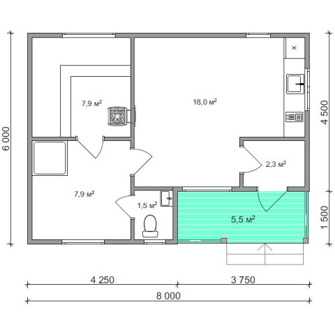 Уютная баня из газобетона общей площадью 43 кв.м. с парной, комнатой отдыха, помывочной, с/у
