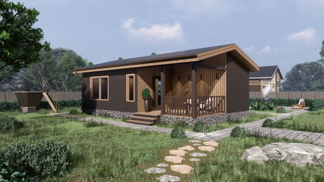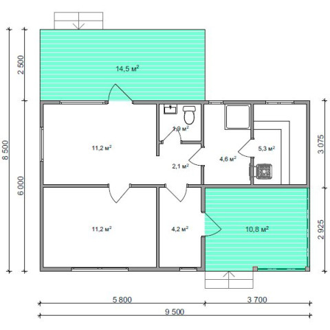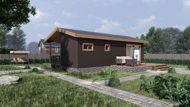 Баня из газобетонных блоков общей площадью 66 кв.м. с парной, помывочной, 3 комнатами отдыха, с/у и террасой