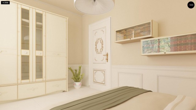 Кладовая, расположенная в кухне, позволит быстро воспользоваться запасами и хозяйственной утварью. К тому же она имеет удобный доступ из прихожей.