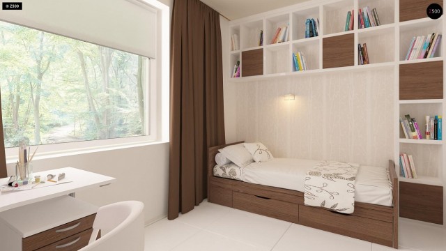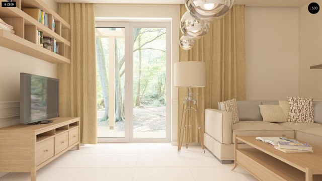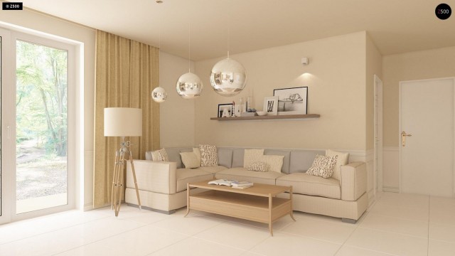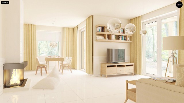 Небольшая площадь несущих стен в дневной зоне позволит вносить определенные изменения в планировку по желанию хозяев. Например, кухню, столовую и гостиную можно сделать полностью отдельными, закрытыми помещениями.