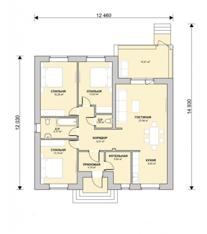Один из самых популярных одноэтажных домов - идеальное решение для тех, кто ценит комфорт, функциональность и практичность. Современный дизайн и удобная планировка делают его идеальным выбором для молодых семей, современных людей или для тех, кто предпочитает жить в уединении.