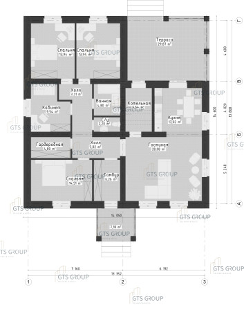 Эргономика дома также продумана. Например, в гостиной и кухне-столовой достаточно места для свободного перемещения. В спальнях достаточно места для кровати и других необходимых предметов мебели. В кабинете достаточно места для работы или учебы.