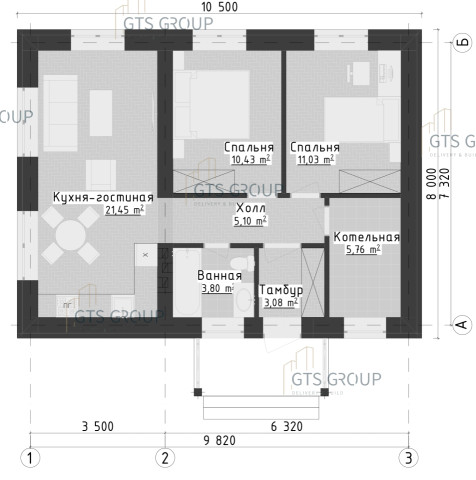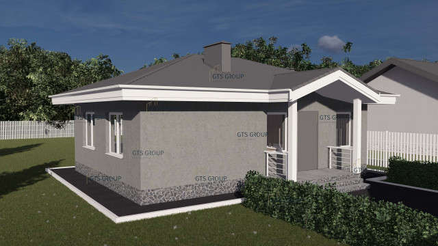 Небольшой одноэтажный Дом — считающий в себе лаконичность комфорт и уют , в стенах этого дома вас встретит просторная кухня -гостиная где вы будете собираться вечером за ужином всей семьей , две изолированные спальни ,просторный холл , ванная и помещение свободного назначения — которое вы можете использовать как котельную так же и как гардеробную .