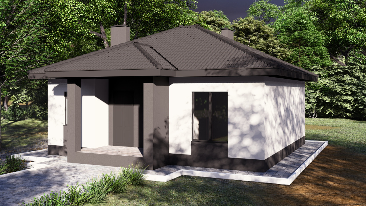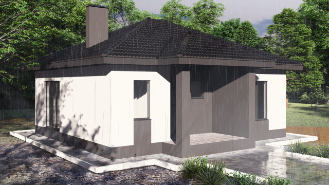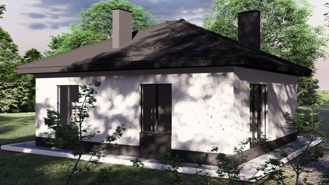 Представляем вашему вниманию жилой дом, который идеально подходит для комфортной жизни небольшой семьи или пары. Этот дом квадратной формы выделяется своей продуманной планировкой и уютом, который создают его функциональные пространства.